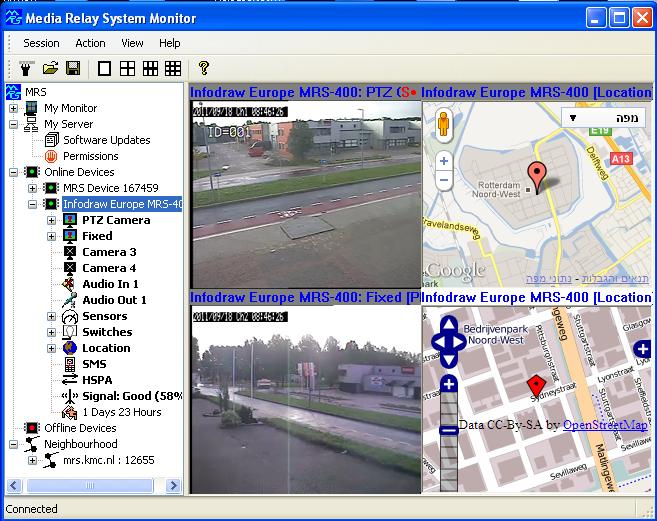 MRS monitoring system is a complete software suit for live multimedia, control, and location using Infodraw devices. The monitoring system is designed to work with mobile devices such as MRS/PMRS using wireless networks as cellular. The monitoring software supports live streaming, recording, location over map, and control.